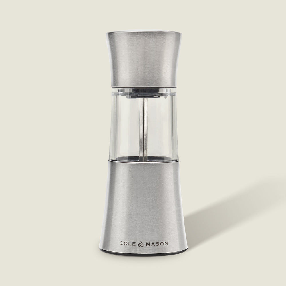 The compact yet sturdy acrylic and stainless steel construction ensures a comfortable grip and effortless grinding for both home cooks and professionals.