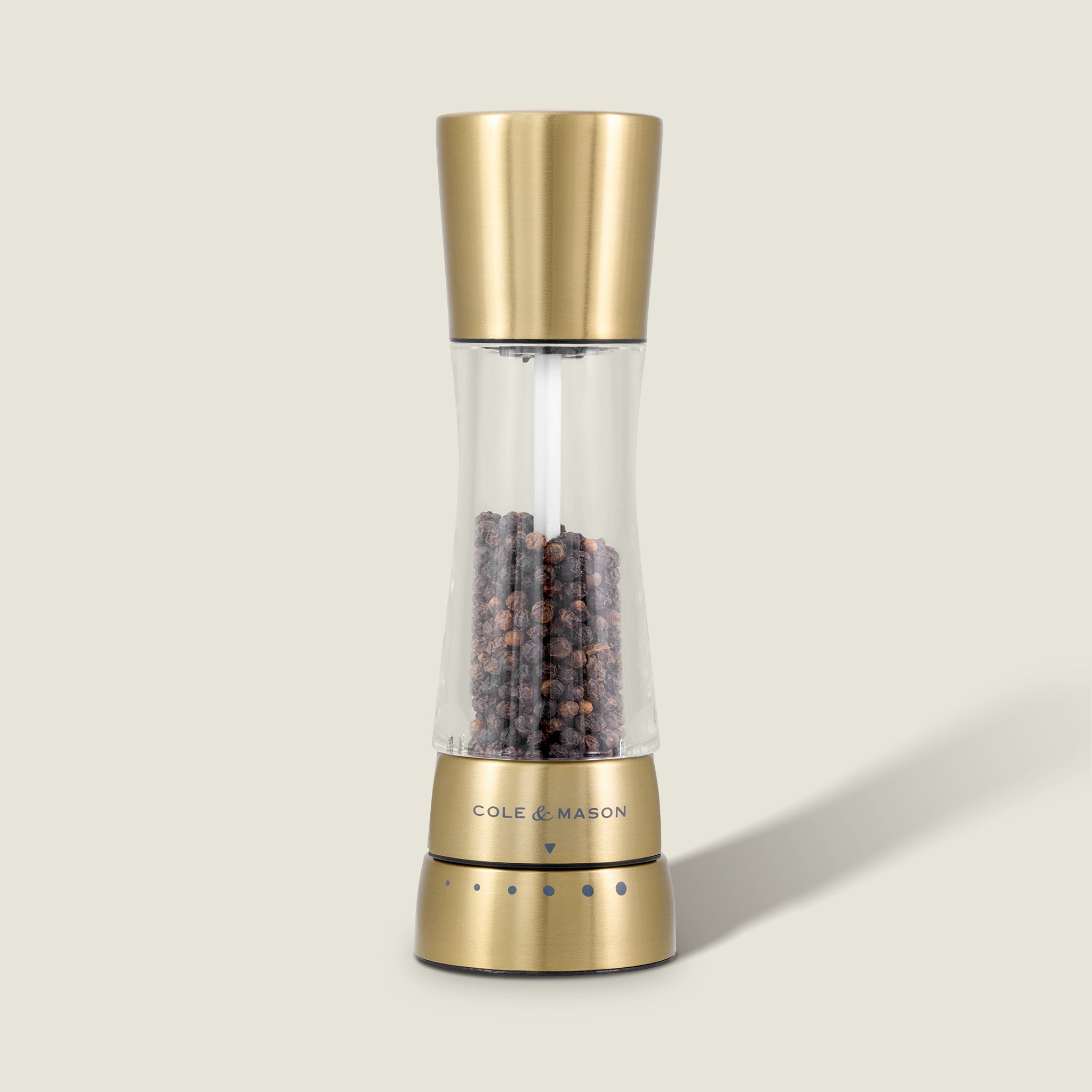 With a sleek matte gold finish and a crystal-clear acrylic body, the Derwent Matte Gold mills offer a contemporary, industrial-inspired aesthetic. The metallic tones add a bold, modern edge to your kitchen, while the transparent body provides a practical view of the contents. Designed for style and performance, these mills ensure effortless seasoning with adjustable grind settings.